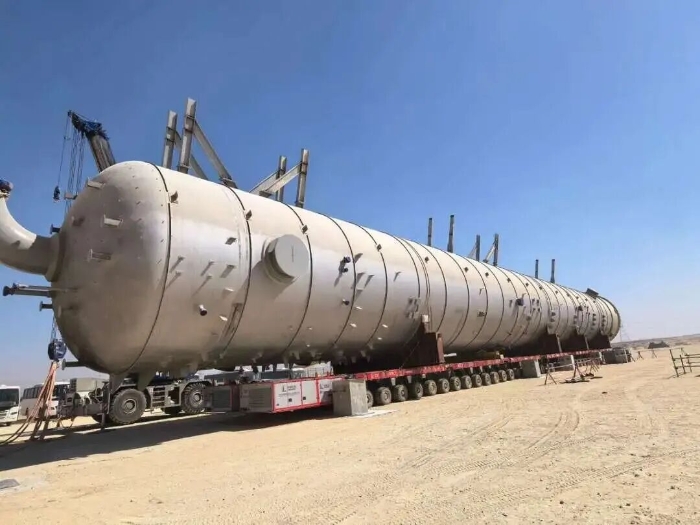 此次吊装的塔器体积庞大、结构复杂,加之当地风速多变、沙尘频发,对高空作业的精度与设备稳定性构成严峻考验。