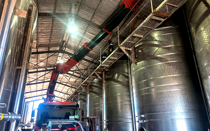 在某海外酿酒工厂的设备转运项目中,徐工随车起重机凭借其卓越的性能和可靠的安全保障,顺利完成了一系列复杂的吊装任务,为工厂的生产线升级提供了坚实支持。