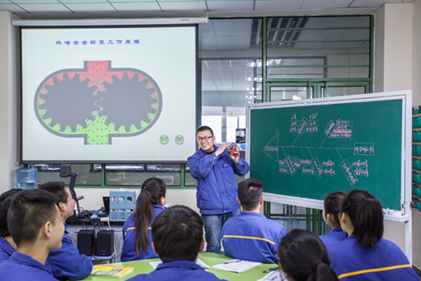 作为一名教师,张明军深知这份事业的责任担当和光荣使命,始终践行着“忠诚信用、艰苦奋斗、为人师表、全面提高”的优良教风,对待学生若春风化雨,倾心哺育。课堂上,他根据学生特点,灵活采取不同的教学方法因材施教;他自编“每天两个阀、轻松学液压,每天三任务、轻松学回路”等朗朗上口的教学口诀,激发学生兴趣,寓教于乐;他还善于将鲜活的企业实例融入教学中,引导学生在学习中工作,在工作中学习,有效缩短学生的岗位适应周期,提升综合职业能力。