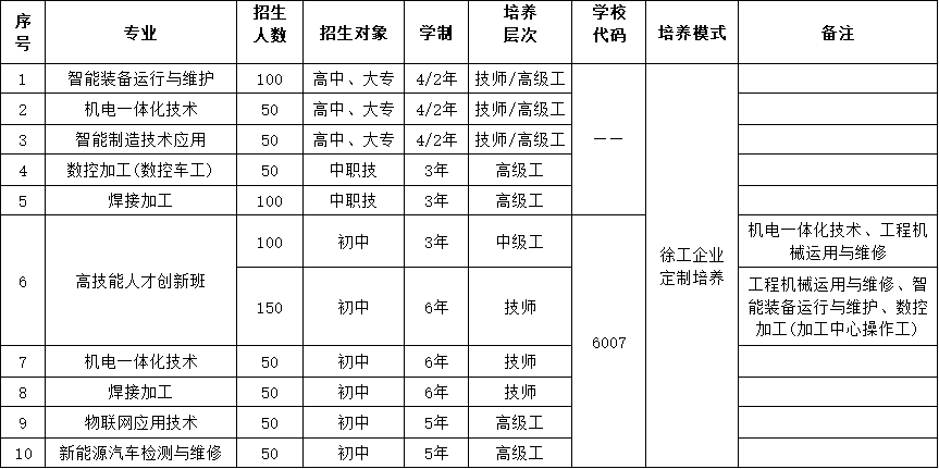 注:我校全称为徐州工程机械技师学院,学校代号为6007,专业代号根据中考指南自选。
